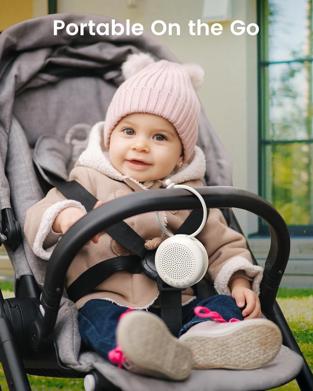 DESIGNED FOR PORTABILITY: Weighing just 0.42 lbs (190g), this ultra-lightweight portable white noise machine is ideal for families on the go. It fits easily into a bag, making it perfect for travel, whether you're heading on a family vacation. The compact size, along with a silicone strap that allows for easy hanging, means you can position it wherever needed—whether next to your baby's crib or on the stroller. With a long-lasting 1000mAh battery, you can enjoy up to 12 hours of continuous use on a single charge, even at maximum volume and brightness. Plus, it comes with a small storage pouch to keep everything neat and organized.
